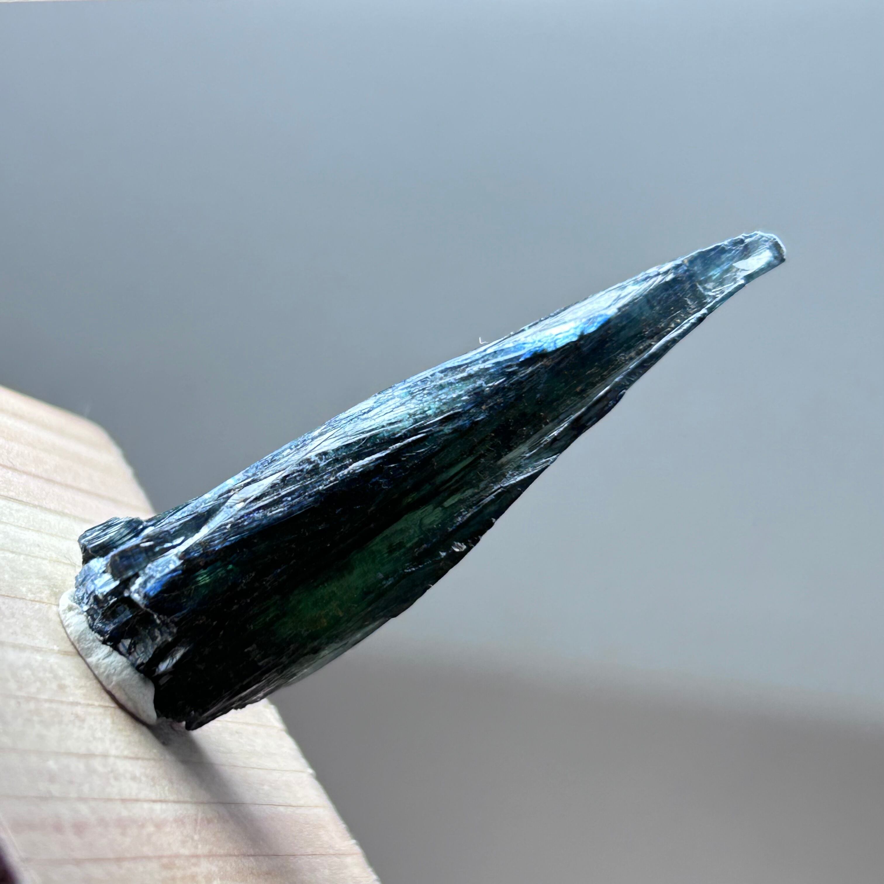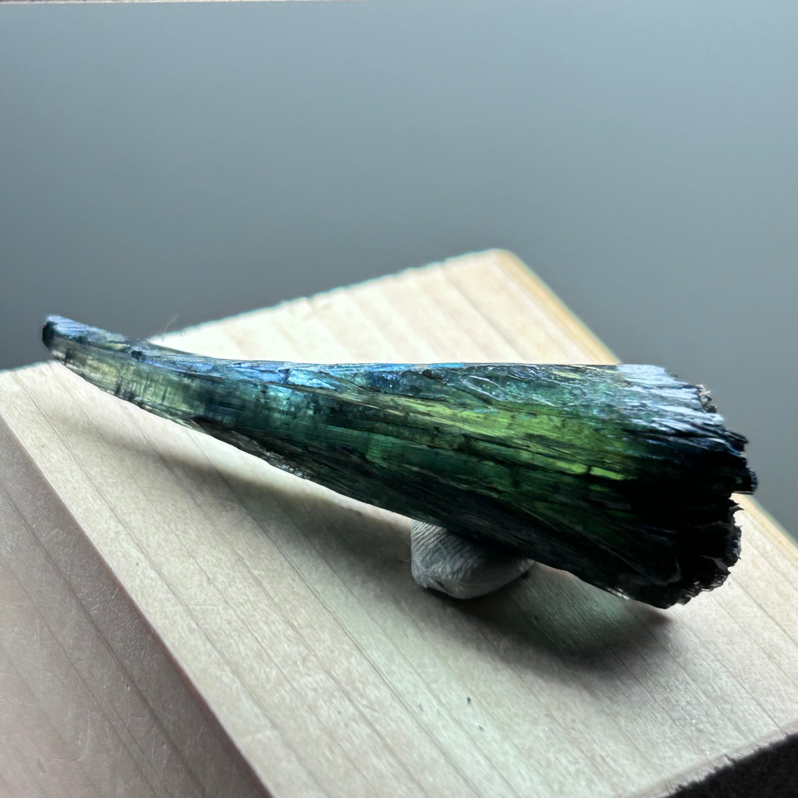 暗い緑青ですが光が透過して明るいカラーが見られます